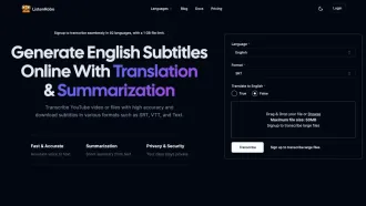 Listenrobo - AI Transcription & Subtitling ToolTranscribe audio and video content seamlessly with Listenrobo, supporting 92 languages and a 1 GB file limit. Generate English subtitles and translate/transcribe YouTube video files with high accuracy. Enjoy fast and accurate voice-to-text summarization for creating concise summaries.